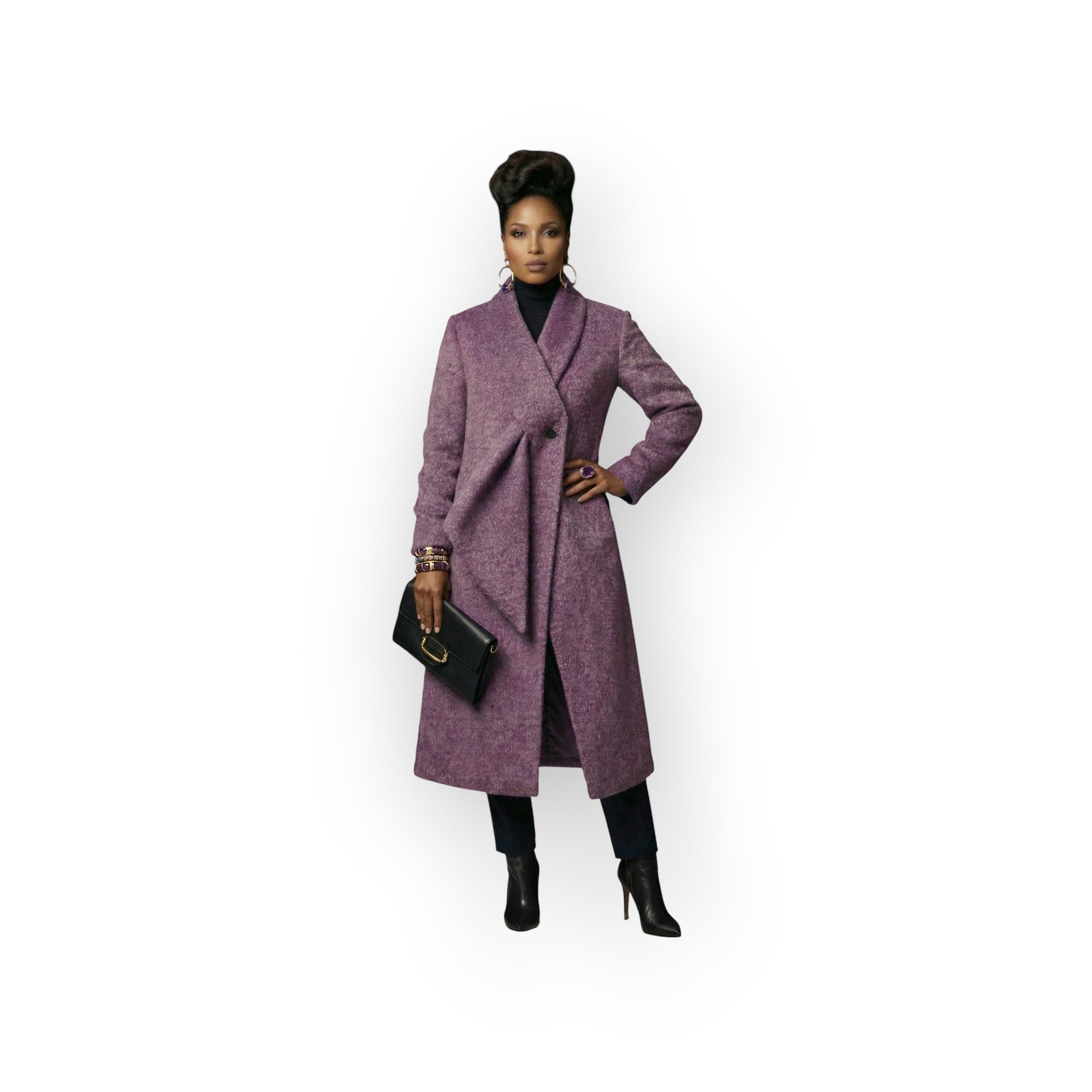 A masterclass in refined movement. The Sophia Coat is tailored from a luxurious composite of 74.5% Sheep Wool, 11.1% Viscose, 5.7% Alpaca Wool, 4.9% Mulberry Silk, and 3.8% Nylon, offering body, softness, and natural stretch. Its double-breasted silhouette and peak lapels deliver effortless polish for the woman who leads with quiet confidence.